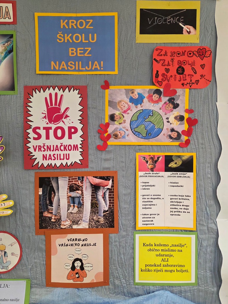 Učeničke radove smo izložili na panou u hodniku škole, te tako pokazali da su zajedništvo i tolerancija najvažniji za razumijevanje različitosti.