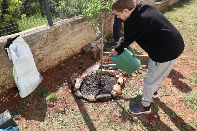 Sedmaši i osmaši su, pod vodstvom učitelja Nikole Repajića, 8. i 9. travnja, zasadili dvije nove voćke u školskom vrtu – badem (mendulu) i japansku mušmulu (nešpulu).