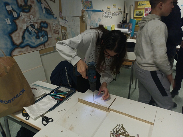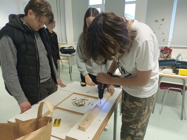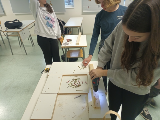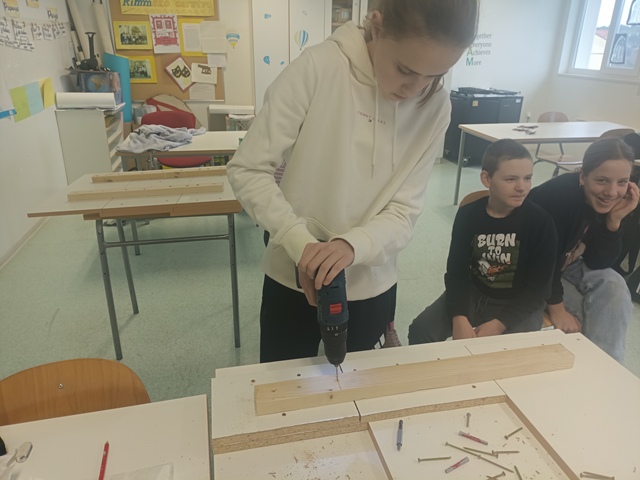 Pod vodstvom učitelja Nikole, učenici su se služili potrebnim alatom, a kao materijal koristili su drvene ploče koje su preostale nakon što su sklopljene školske klupe. Upravo takvim postupkom prenamjene materijala i preostalih predmeta, slijedili su jedno od ekoloških pravila – prenamjenom ili reciklažom napraviti nešto novo.