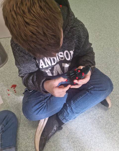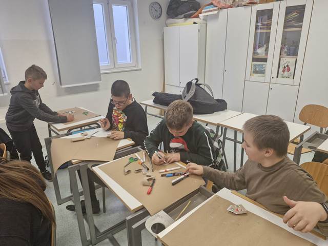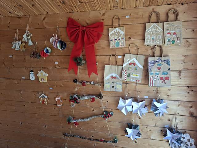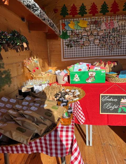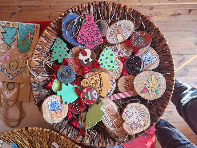 I ovogodišnji radovi naših učenika, koje su izložili na Božićnom sajmu, izrađeni su od recikliranih materijala, materijala koje su pronašli u prirodi i od “darova prirode”.