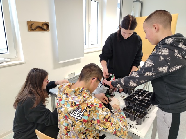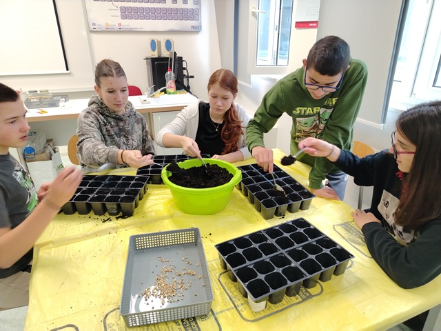 Učenici Prirodoslovne grupe sudjelovali su u praktičnoj radionici tijekom koje su sijali sjemenke nevena te učili o pravilnoj njezi i uzgoju biljaka. Nakon klijanja biljaka, učenici su obavili i presadnju mladih sadnica, prateći njihov rast i razvoj. Aktivnost je učenicima približila važnost brige o biljkama i očuvanja prirode kroz iskustveno učenje.